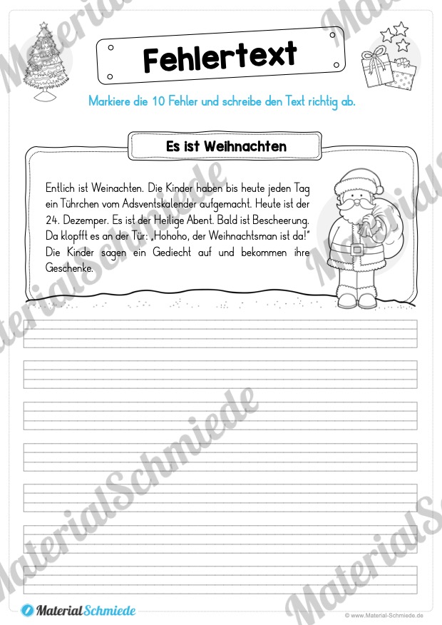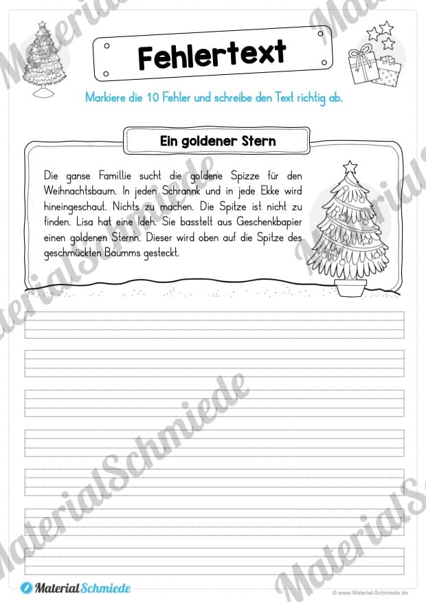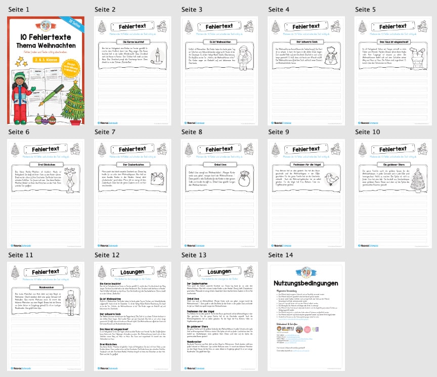 Die Themen der Fehlertexte zu Weihnachten lauten wie folgt: