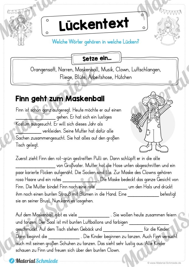 Viel Spaß mit den 10 verschiedenen Leseübungen passend zum Fasching / Karneval.