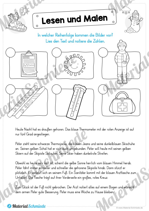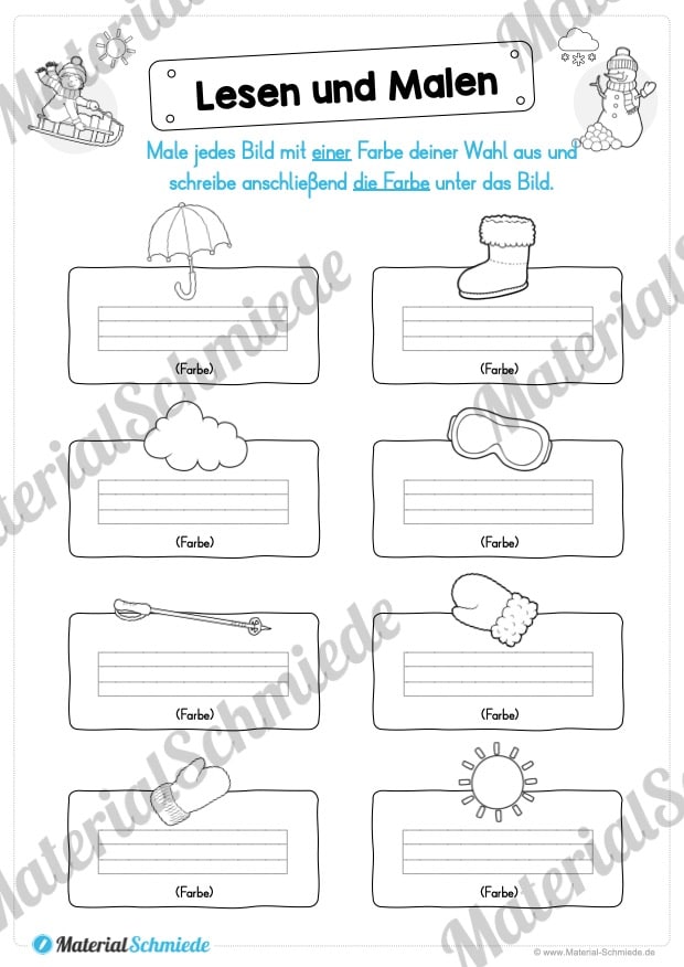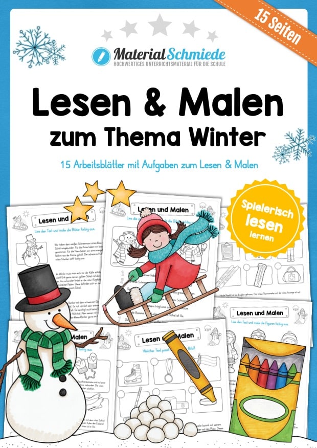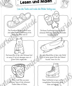 Um das Lesen mit einer spielerischen Komponente zu verknüpfen, eignet sich das Malen hervorragend. Die Schüler erhalten auf den 15 PDF-Seiten verschiedene Aufgaben und Übungen, die nur gelöst werden können, wenn das Lesen mit dem Malen kombiniert wird. Dabei dreht sich hier alles um den Winter.