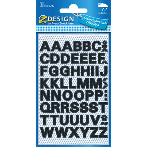 3780 Buchstaben-Etiketten – A-Z, 9,5 mm, schwarz, selbstklebend, wetterfest, 104 Etiketten
