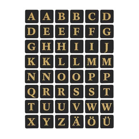 4130 Buchstaben-Etiketten – A-Z, 13×13 mm, schwarz gold geprägt