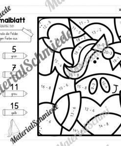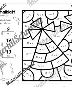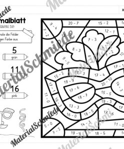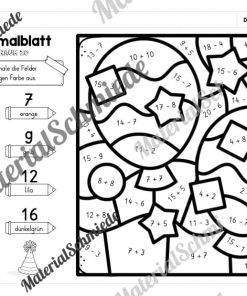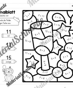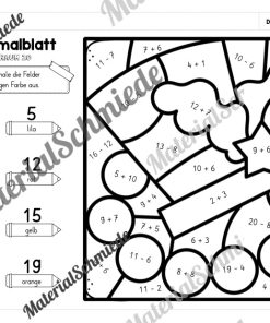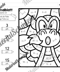 Die Aufgabe für die Schüler besteht darin, die Aufgaben im Zahlenraum bis 20 auf dem Bild zu lösen. Je nach Ergebnis, soll eine andere (vorgegebene) Farbe ausgemalt werden. So lernen die Schüler spielerisch Rechnen.