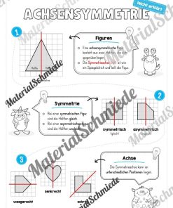 Mit Hilfe dieses Arbeitsheftes erhalten die Schüler einen leichten Einstieg in das Thema Achsensymmetrie. Begleitet werden die Aufgaben von kleinen Monstern, welche den Kindern Tipps geben und die Motivation bei der Bearbeitung der Aufgaben aufrecht erhalten.