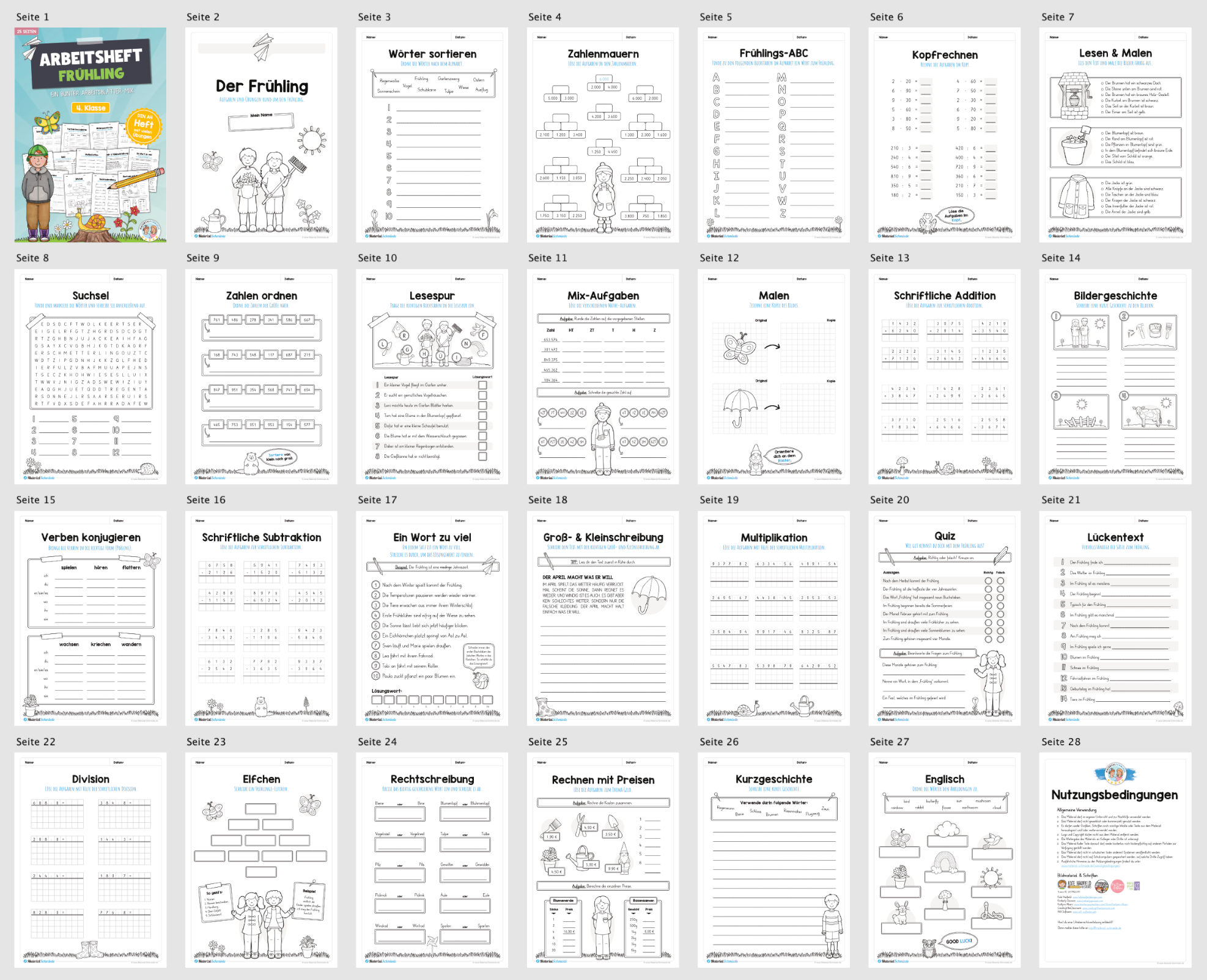 Hier findet ihr ein Arbeitsheft zum Thema Frühling für die 4. Klasse bestehend aus insgesamt 25 Seiten.
