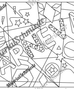 Um die Schriftzüge herum sind viele verschiedene Muster zu erkennen, welche von den Kindern ausgemalt werden sollen.