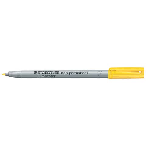 Feinschreiber Lumocolor® non-permanent. Nachfüllbar. Ausführung Spitze: S-Spitze, ca. 0.6 mm. Art der Schreibflüssigkeit: geruchsarme Tinte, gelb. Für Overhead-Projektion und fast alle Flächen, feucht abwischbar von Folien, wasserlösliche Tinte, schnelltrocknend, höchste Farbbrillanz, mit Clip, Schaft und Kappe aus PP garantieren lange Lebensdauer. Farbe der Kappe: in Schreibfarbe. Material des Clips: Kunststoff. Farbe des Schaftes: grau. Gehäuse aus 97% recyceltem Plastik.