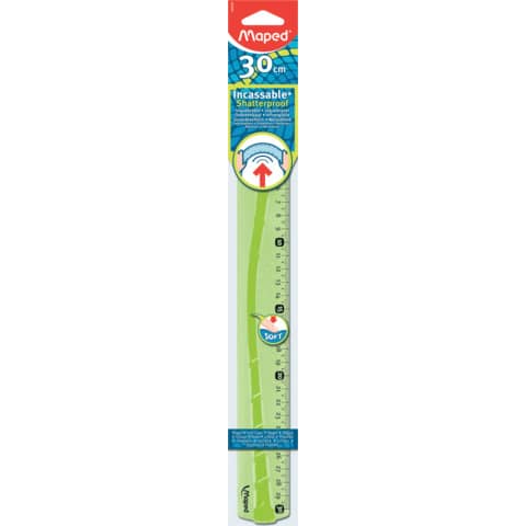 Flachlineal Flex · Ausführung der Tuschekante: unterseitig · 100% bruchsicher, lässt sich biegen und drehen, Skalenaufdruck mit UV-beständiger Farbe für optimale Haltbarkeit, alle 5 cm eine gut sichtbare Markierung · Länge: 30 cm · Farbe: sortiert in blau und grün-transparent · Ausführung des Inhalts mit Packung: in Kunststoff-Etui