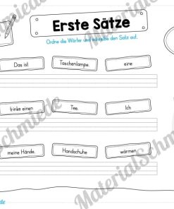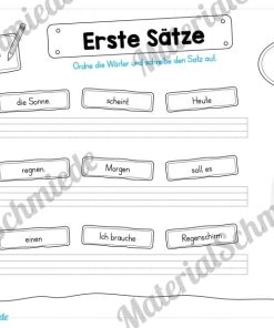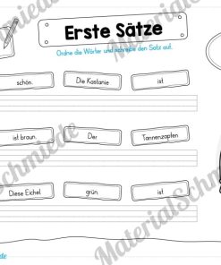 Je Arbeitsblatt sollen die Schüler 3 Sätze schreiben. Hierfür müssen wiederum drei Satzbausteine in die richtige Reihenfolge gebracht werden, damit der Satz einen Sinn ergibt.