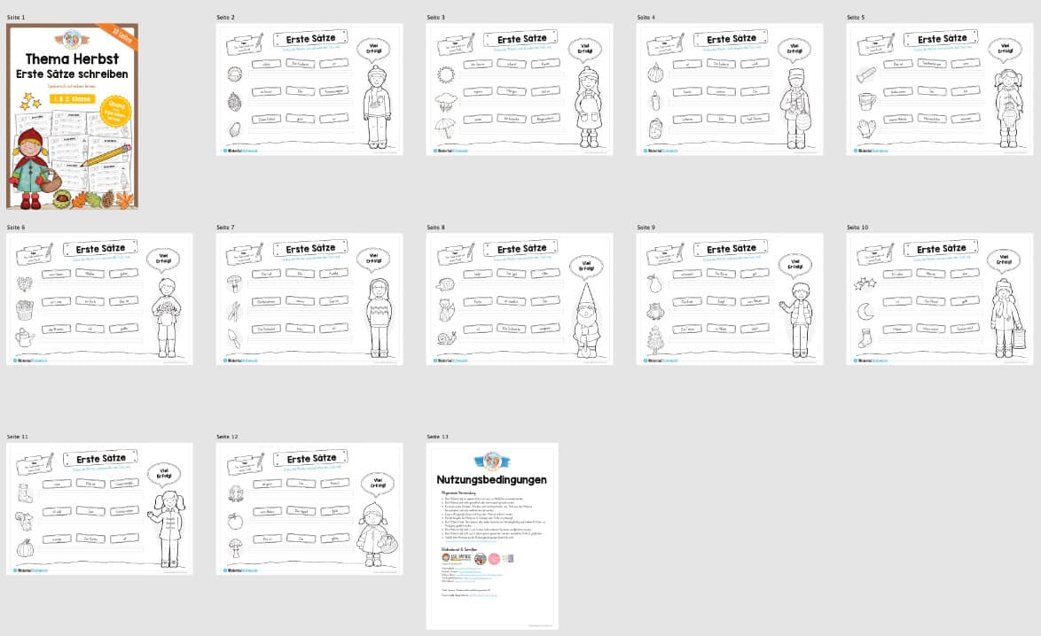 Dieses kleine Materialpaket enthält insgesamt 10 Seiten, auf denen die Schüler erste Sätze passend zum Herbst schreiben sollen.