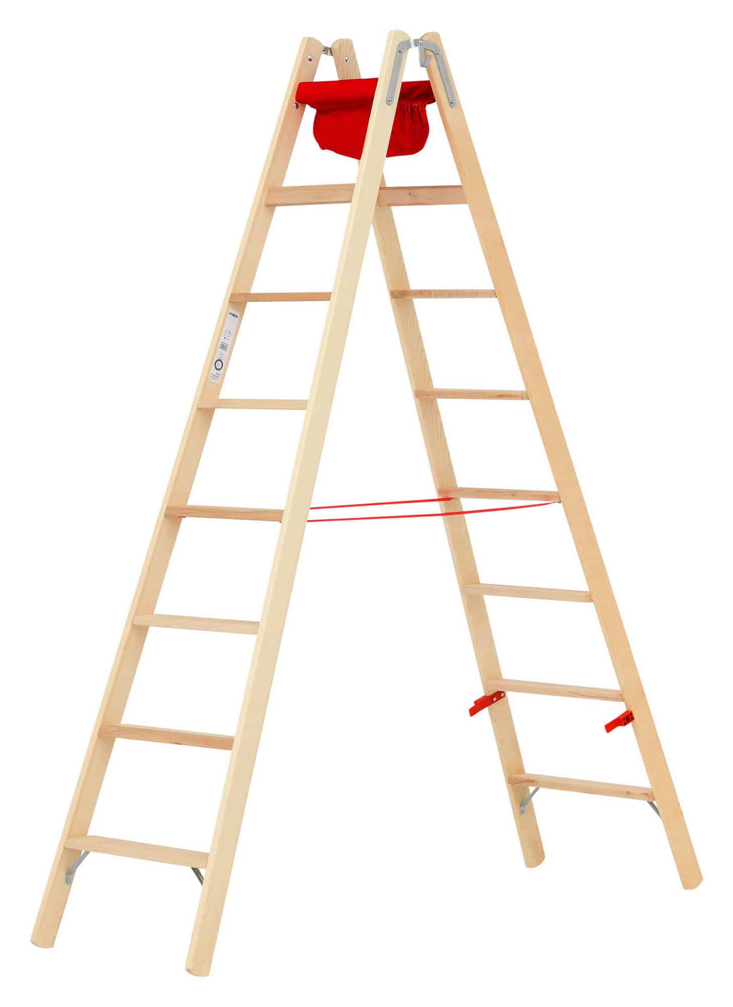 Hymer Holz-Stufenstehleiter 71499 beidseitig begehbar mit 2×8 Stufen. Reichhöhe: 365cm