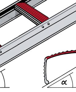 Der Dachneigung entsprechend kann die Flach- oder Steilseite der Sprosse als Trittfläche verwendet werden.