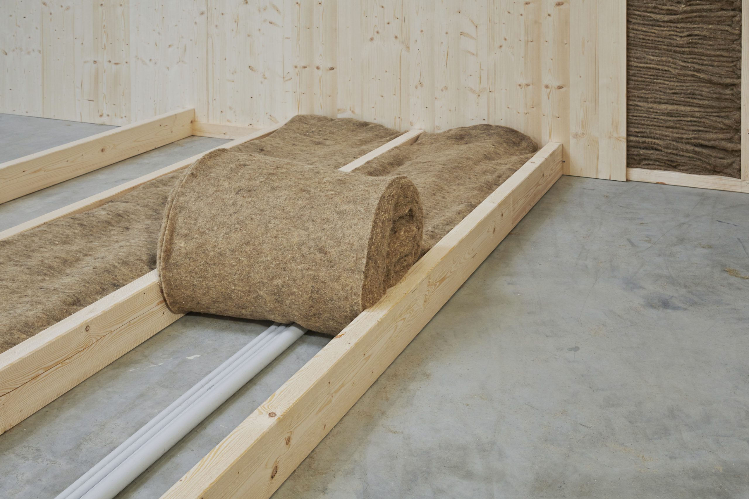 Homogenes, nicht belastbares Schafwollvlies zur Wärme und Schalldämmung zum einfachen Aufrollen.