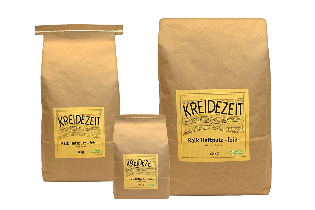Feines Marmorkalkhydrat, italienische Marmormehle und weißer Quarzsand verleihen dem Kalk Haftputz einen sehr hohen Weißgrad sowie sehr gutes Binde- und Haftvermögen, ganz ohne Zusatz von Kunstharzbindemitteln und synthetischer Pigmente wie Titanweiß. Kalk Haftputz -fein- ist oberflächenfertig und muss nicht überstrichen werden.