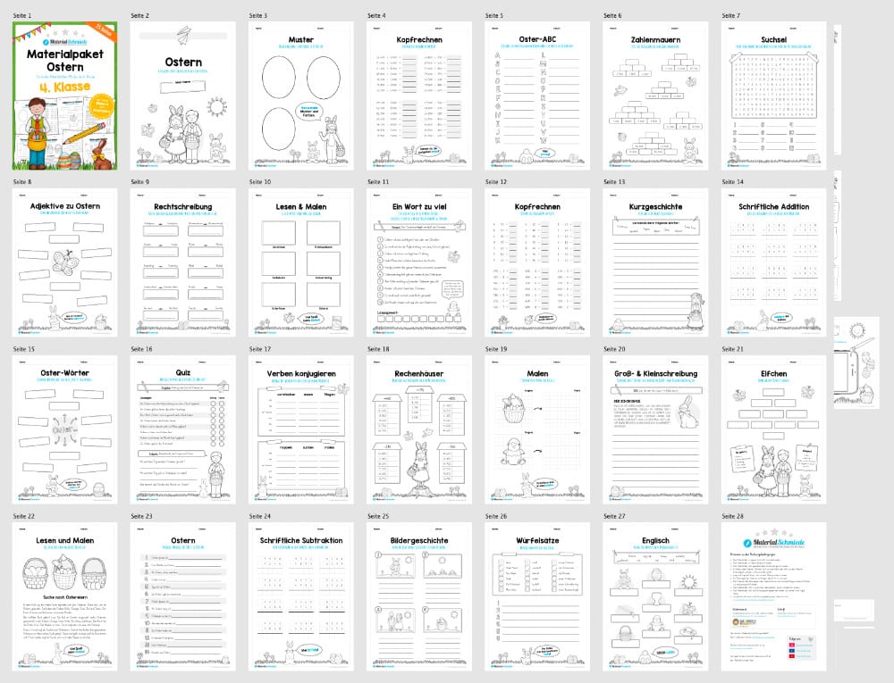 Hier findet ihr ein Materialpaket zum Thema Ostern für die 4. Klasse bestehend aus insgesamt 25 Seiten.