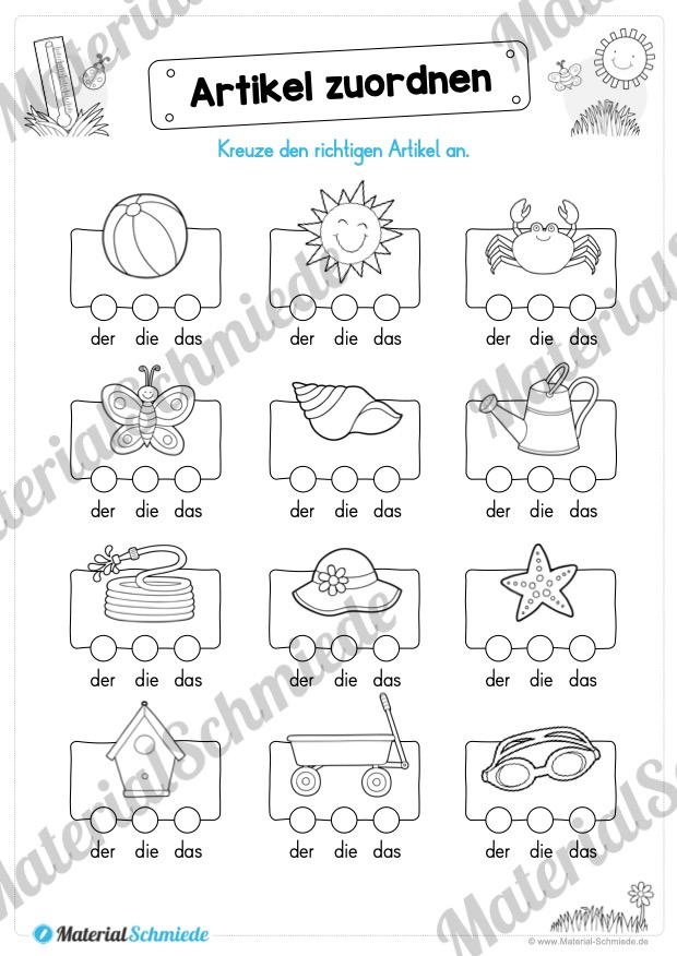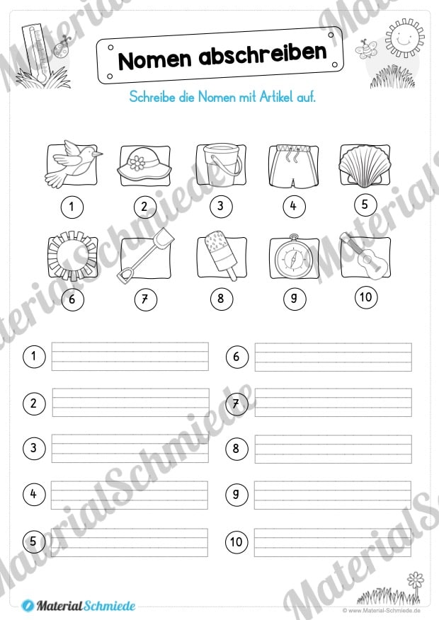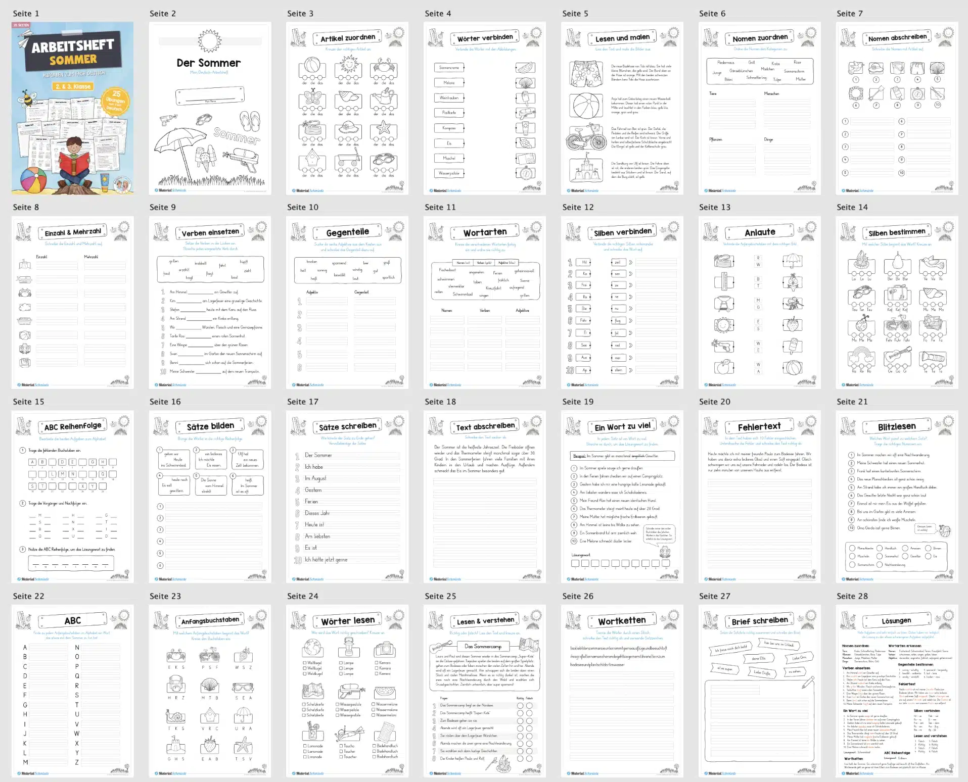 Das Materialpaket zum Thema Sommer für den Deutsch Unterricht in der 2. und 3. Klasse beinhaltet 25 verschiedene Arbeitsblätter.