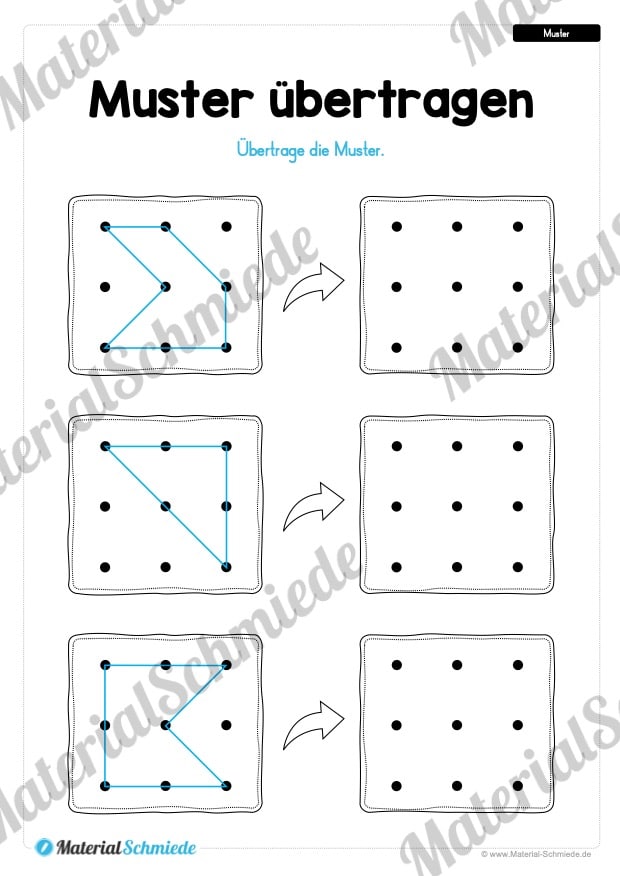 Dieses Materialpaket enthält 5 Übungen zum Thema Muster übertragen speziell für Kinder in der Vorschule.