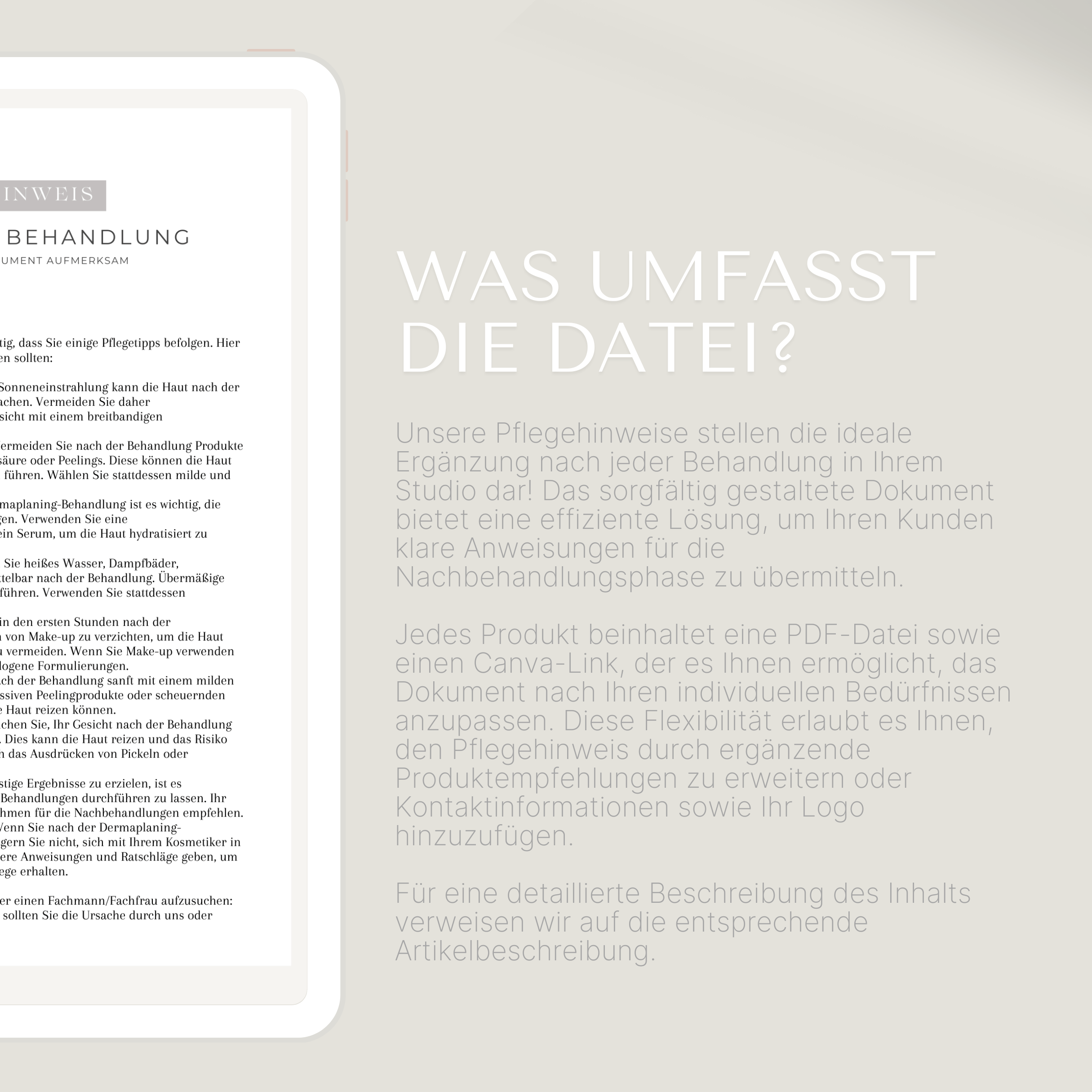 Nach einer Sugaring Behandlung ist eine sorgfältige Nachsorge entscheidend, um Hautirritationen zu vermeiden und die Ergebnisse zu optimieren. Mit unserem Pflegehinweis-Formular stellen Sie sicher, dass Ihre Kunden die richtigen Schritte zur Hautpflege nach der Behandlung befolgen und sich wohlfühlen.