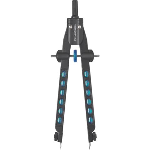 Schnellverstellzirkel Factory. Werkstoff: Metall. Typbezeichnung der Schnellverstellung: Zahnradführung. Art der Feineinstellfunktion: Mitteltriebrad. Ausführung des Zirkeleinsatzes: Bleieinsatz. Anzahl der Gelenke: 2. Inkl Ersatzteildose und Minen, sortenreine Sortierung. Verwendung für Zapfendurchmesser: 4 mm. Minenbüchse vorhanden. Max. Durchmesser des Zeichenkreises: 340 mm. Länge: 170 mm. Farbe: pearl blue.