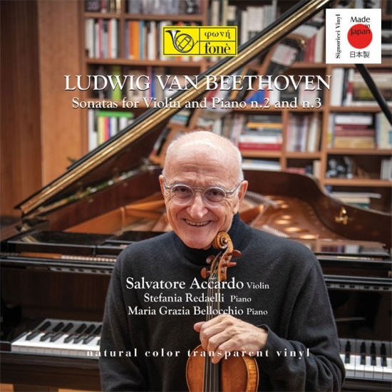 Mozart hatte den Boden bereitet, doch es war Beethoven, der tatsächlich Parität schuf zwischen den beiden Instrumenten, der Sonaten schrieb für Violine UND Klavier, auch schon in den frühen aus Op. 12. Unüberhörbar sind die Passagen, in denen es Beethoven offensichtlich um den Zusammenklang der Instrumente ging, die beiden Solisten also zum kleinstmöglichen Kammerensemble werden. Es scheint, als ob dem einstigen Top-Virtuosen Salvatore Accardo (man denke an seine Paganini-Aufnahmen!) im hohen Alter nun auch gerade diese Momente am wichtigsten sind; eine nicht zu unterschätzende Rolle freilich spielt auch das perfekt ausgewogene Klangbild, das Giulio Cesare Ricci mit seinem All-Tube-Analogue-Equipment erreichte… – Limitiert auf 496 Exemplare. (2023)