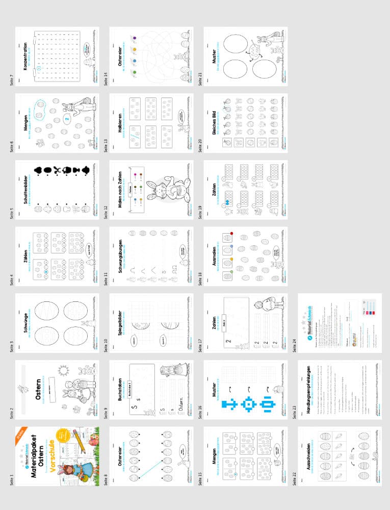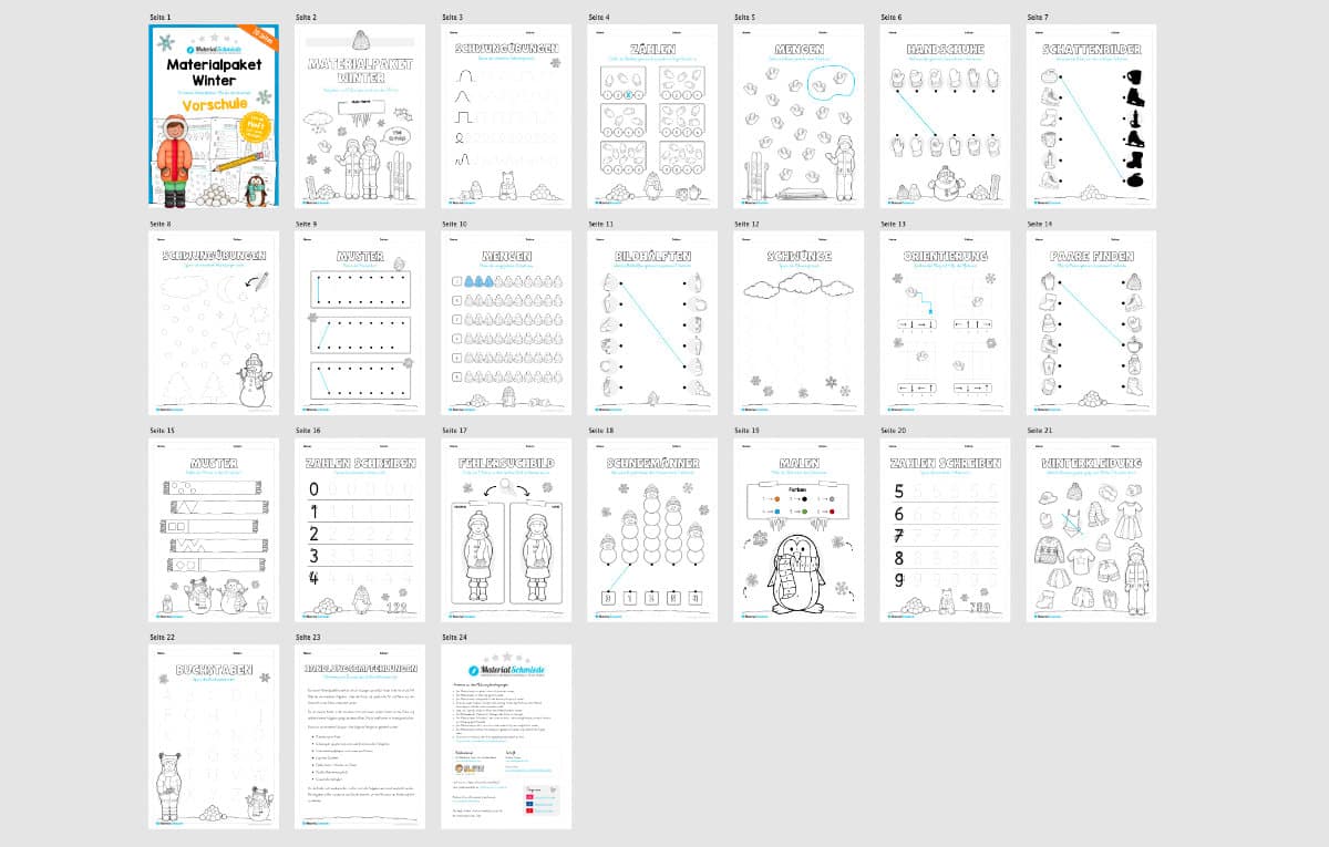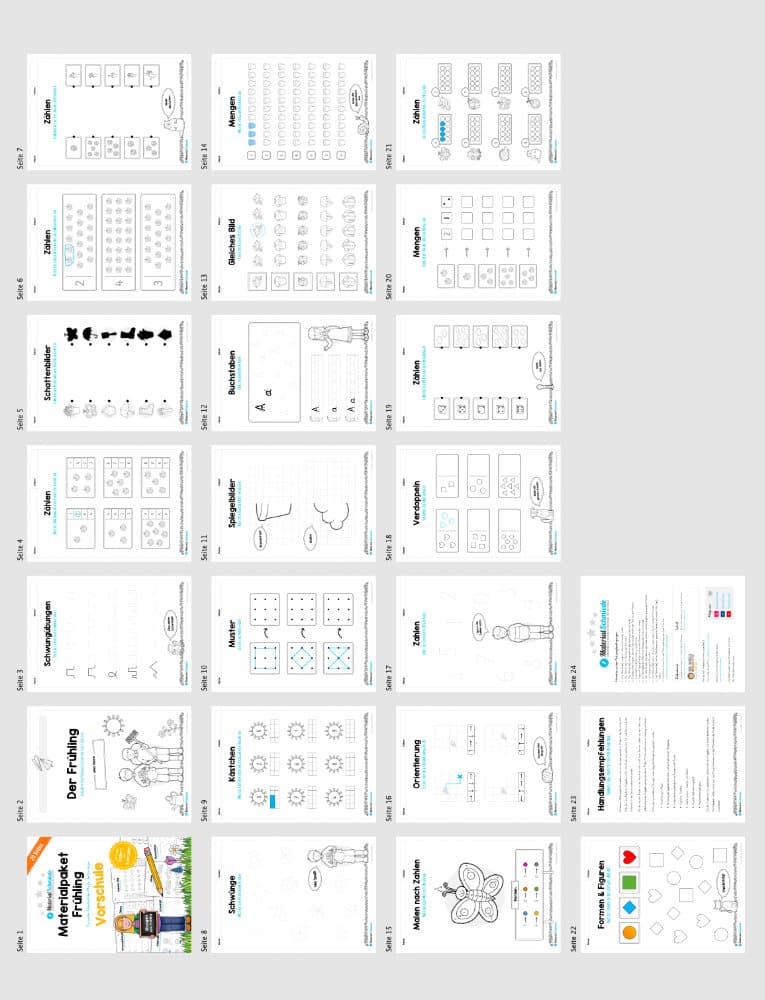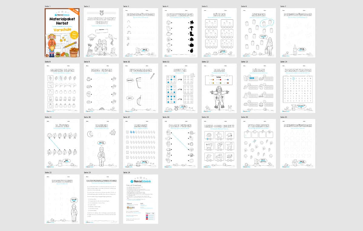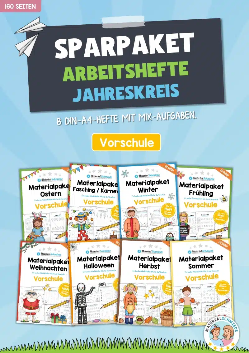 Die Materialpakete sind alle im DIN A4 Format gehalten. Übrigens findet ihr bei uns noch ein weiteres Bundle ebenfalls mit Übungen zur Vorschule im DIN A5 Format. Das Jahreszeiten-Bundle mit den Mini-Heften enthält ähnliche, jedoch leicht andere Aufgaben, sodass ihr diese auch gut parallel oder zusätzlich zum Einsatz bringen könnt.
