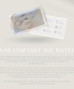 Sorgen Sie dafür, dass Ihre Kunden die Nachbehandlung Ihrer Sugaring-Behandlungen jederzeit griffbereit haben – mit den praktischen Pflegehinweisen im Visitenkartenformat. Übergeben Sie diese direkt nach der Behandlung, um Ihren Kunden eine schnelle und klare Orientierung zu bieten. Das kompakte Format garantiert eine einfache Aufbewahrung und ermöglicht es Ihren Kunden, die wichtigsten Informationen jederzeit nachzulesen. Zusätzlich ergänzen diese Karten Ihre detaillierteren Pflegehinweise im DIN A4-Format und bieten so noch mehr Komfort.