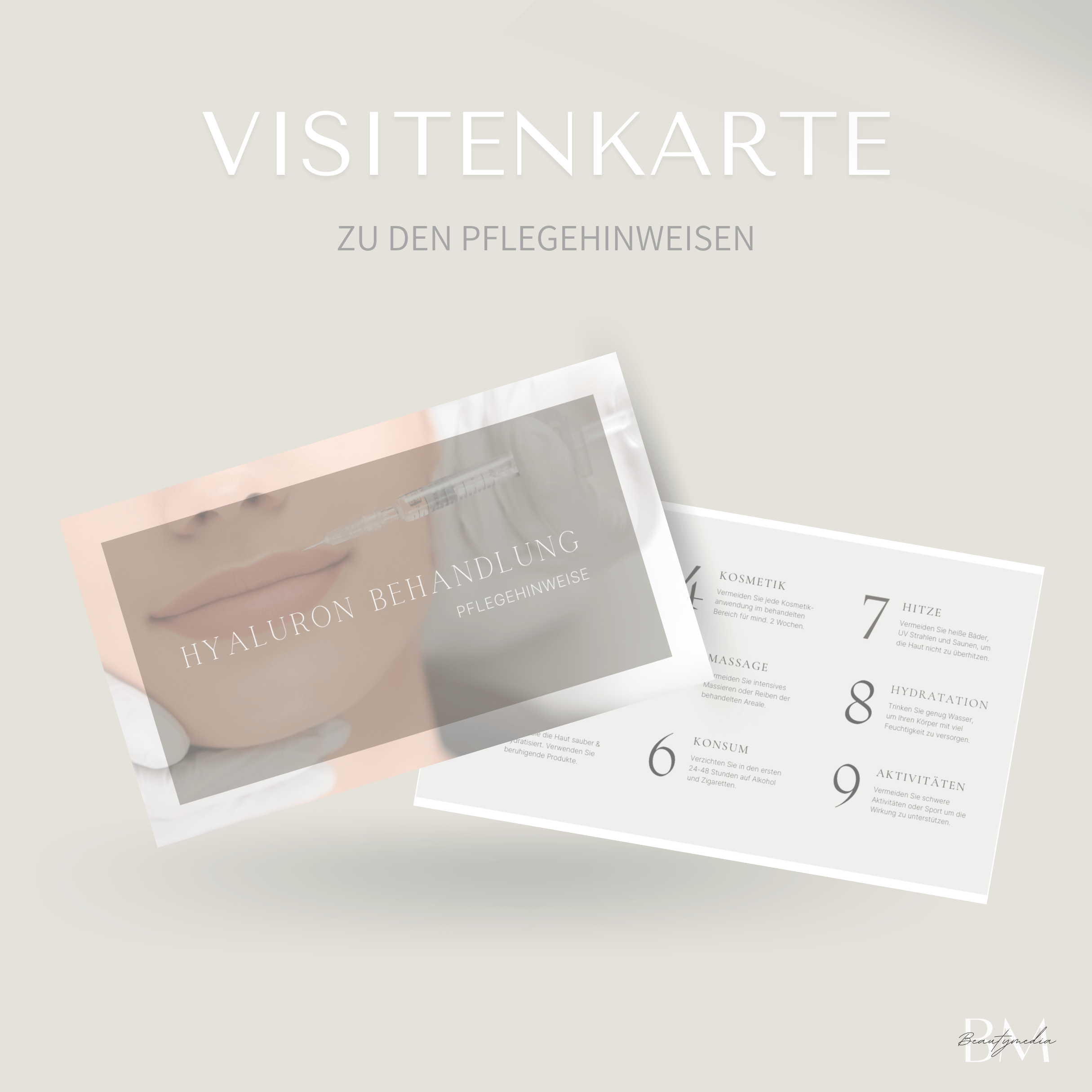 Laden Sie die Pflegehinweise für Hyaluron-Behandlungen jetzt herunter und bieten Sie Ihren Kundinnen eine professionelle und sichere Nachsorge. Entdecken Sie auch viele weitere hilfreiche Vorlagen in unserem Onlineshop.